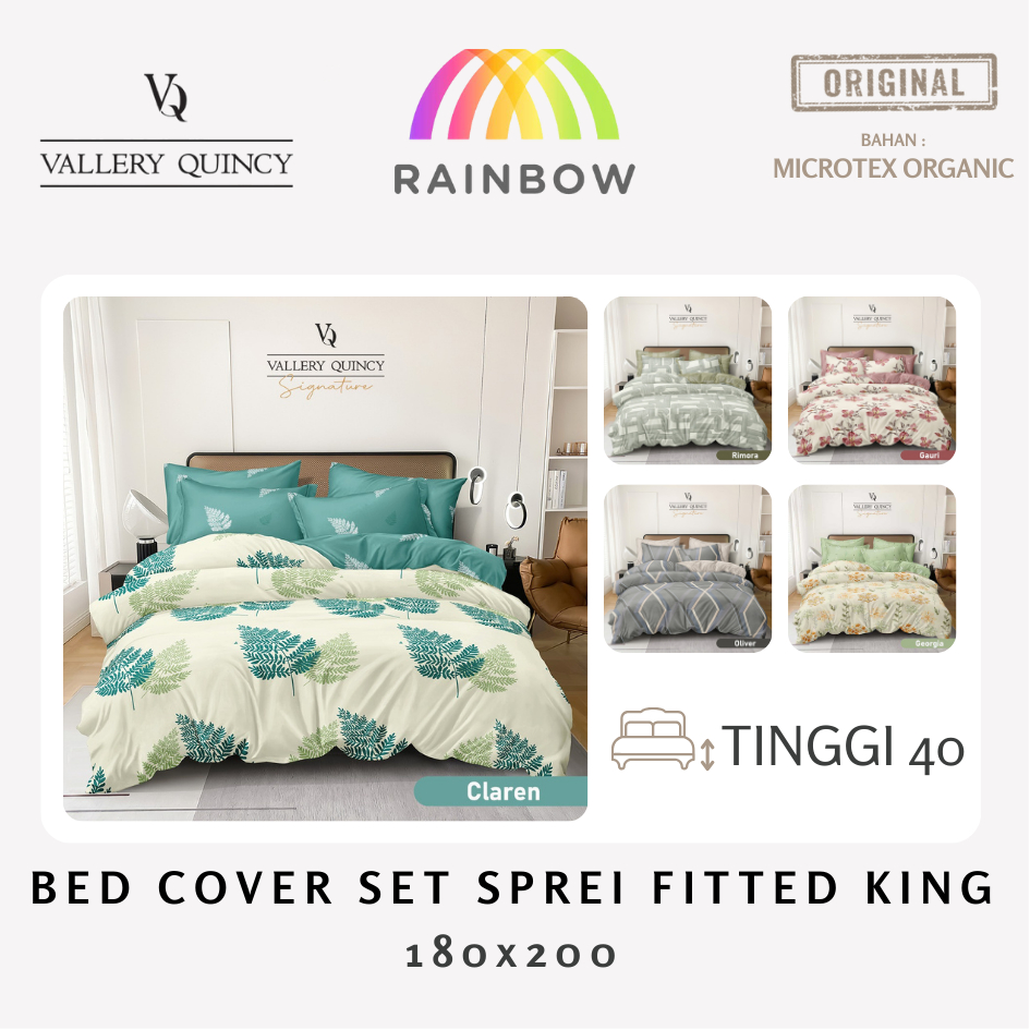 Vallery Quincy Signature - Bed Cover Set Sprei Fitted King T40 (180X200) Tinggi 40 Microtex Organic Hand Feel Cotton Jep