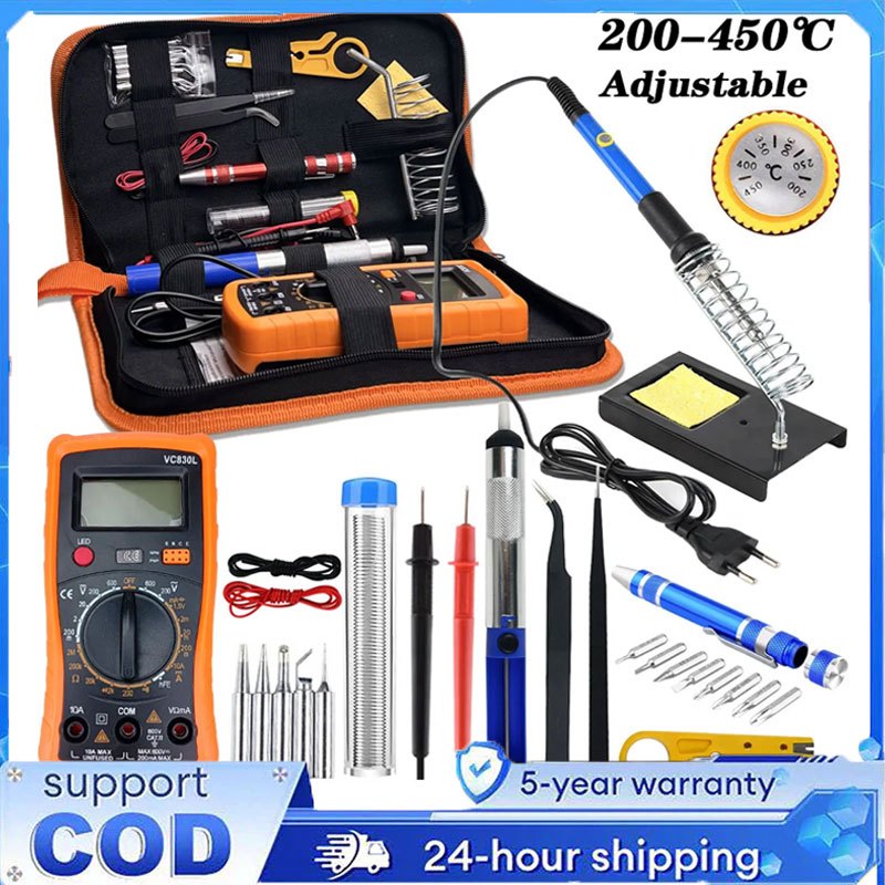 Set Solder Listrik Lengkap Dengan Multimeter Iron Tool Kit 220V 60W/Solder Suhu Dapat Disesuaikan 200 - 450°C Solder Lis
