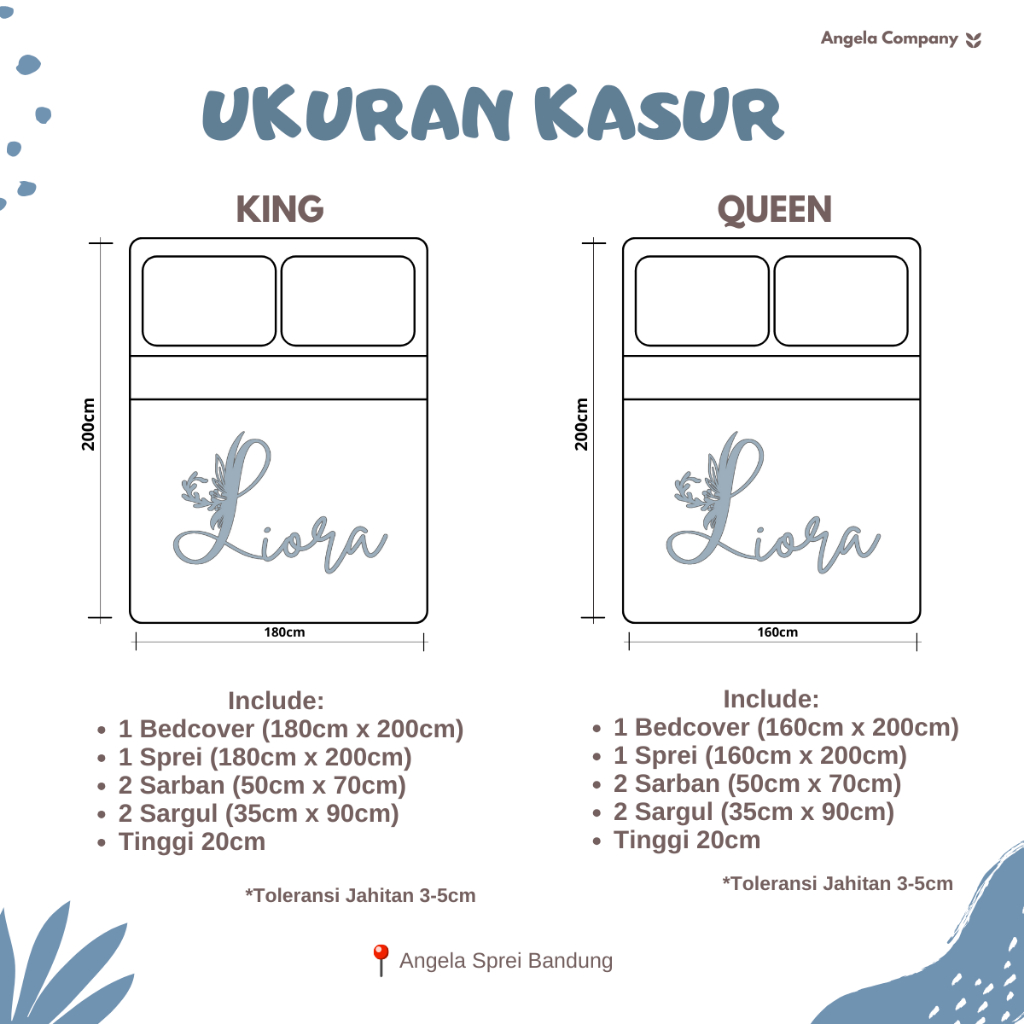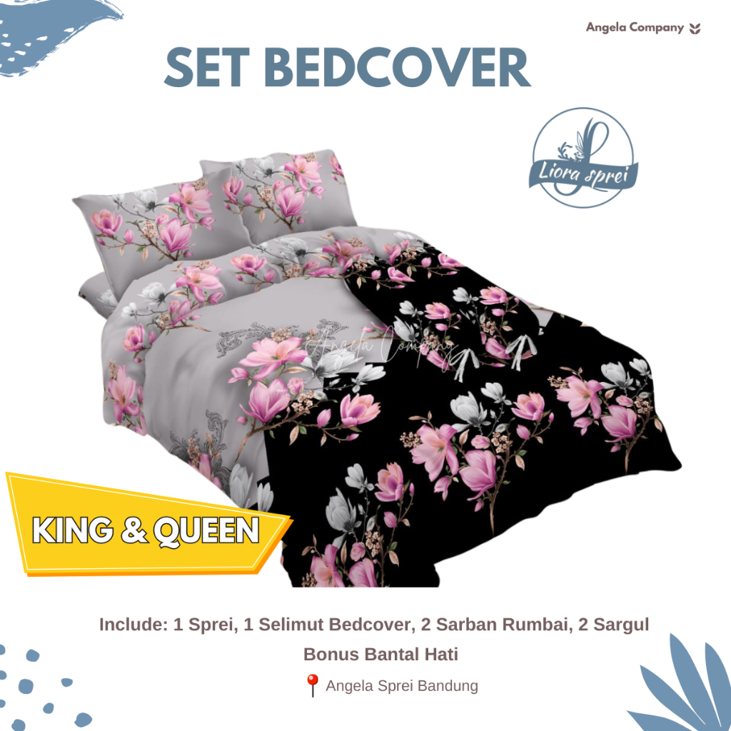 Liora Bedcover Set + Bantal Hati + Sprei Flat Ukuran King & Queen