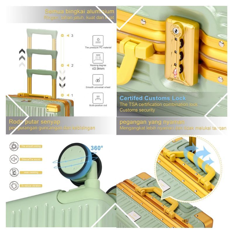 Jzr Travel Koper A978 Koper Kombinasi Koper Kabin Roda Universal Rangka Aluminium Ukuran 20/22/24Inci A978