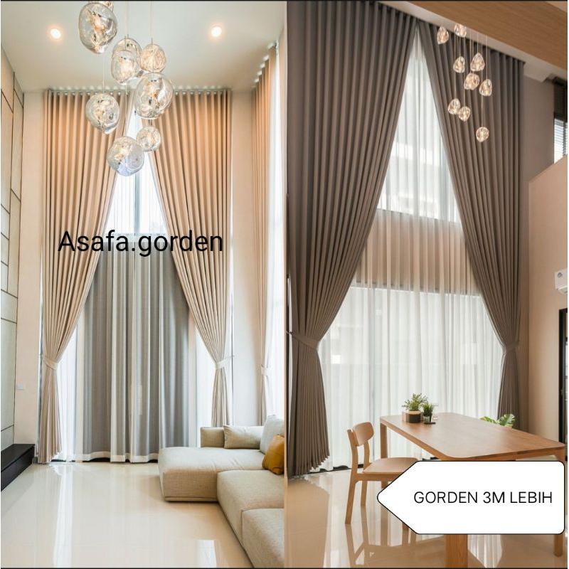 Gorden Polos Tinggi 3M Lebih Bahan Blackout Safron Minimalis Mewah Murah Tirai Jendela