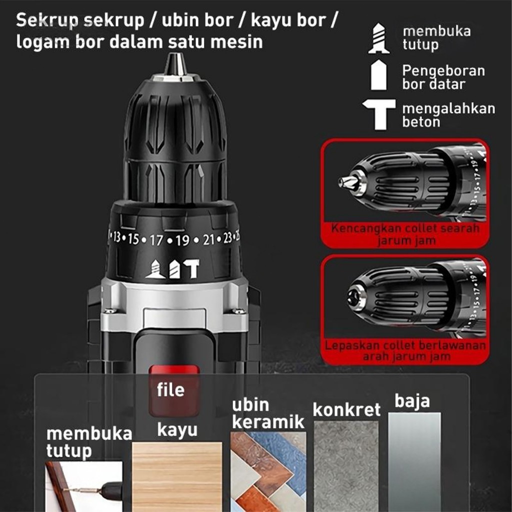 899VF Mesin Bor Baterai 3 in 1 Tangan Cordless Drill Bor Listrik besi tembok Beton kayu - Cordless Drill bor
