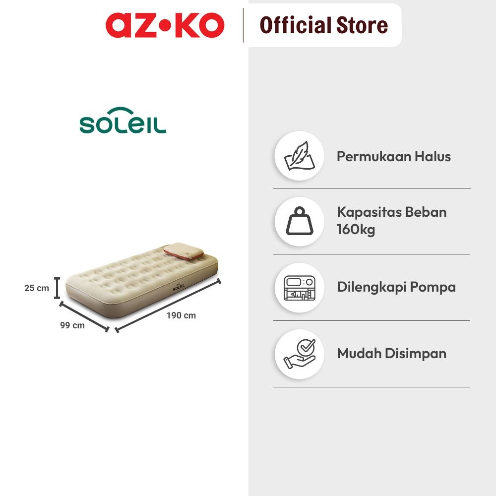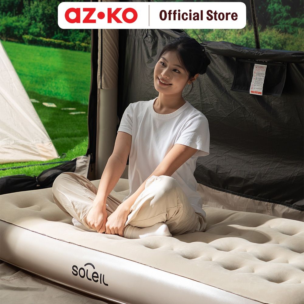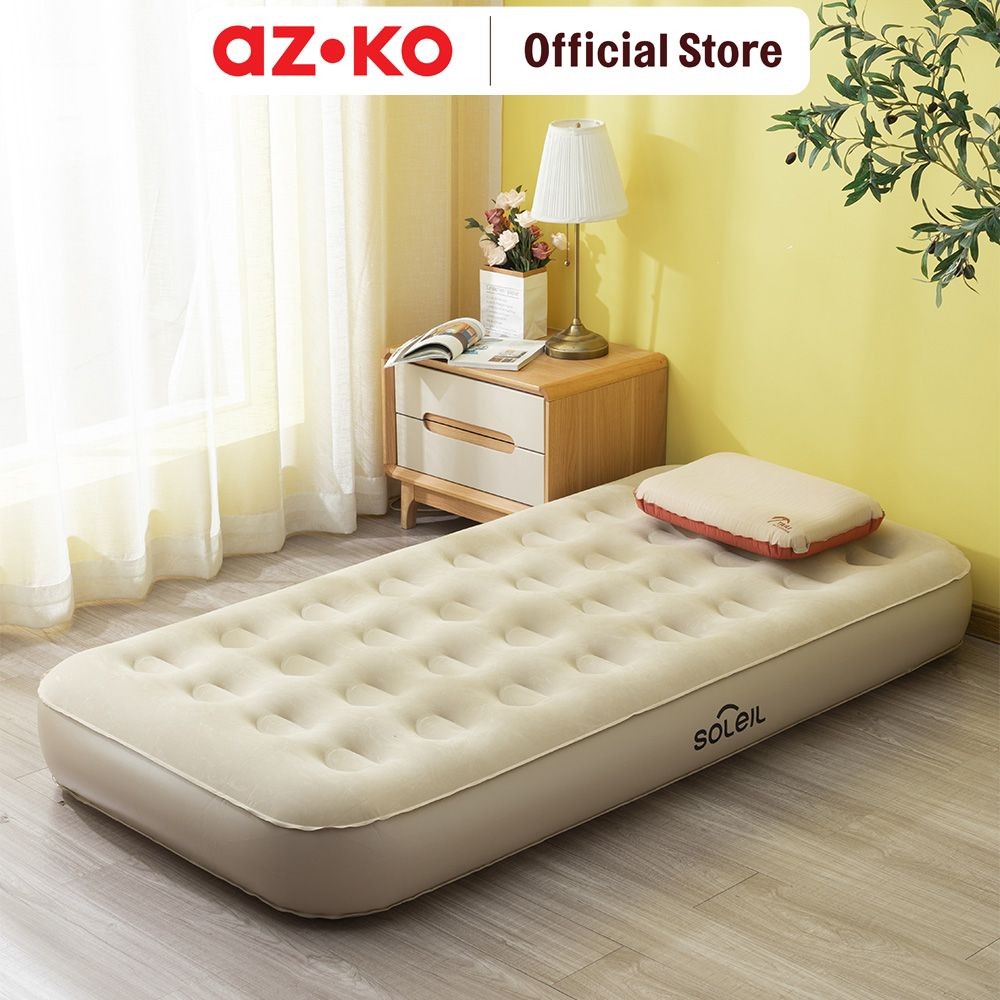 Azko Soleil Kasur Angin Otomatis Inflatable Twin - Cokelat Khaki Alas Tidur Pompa Serbaguna Air Mattress Bed Sleeping Pa