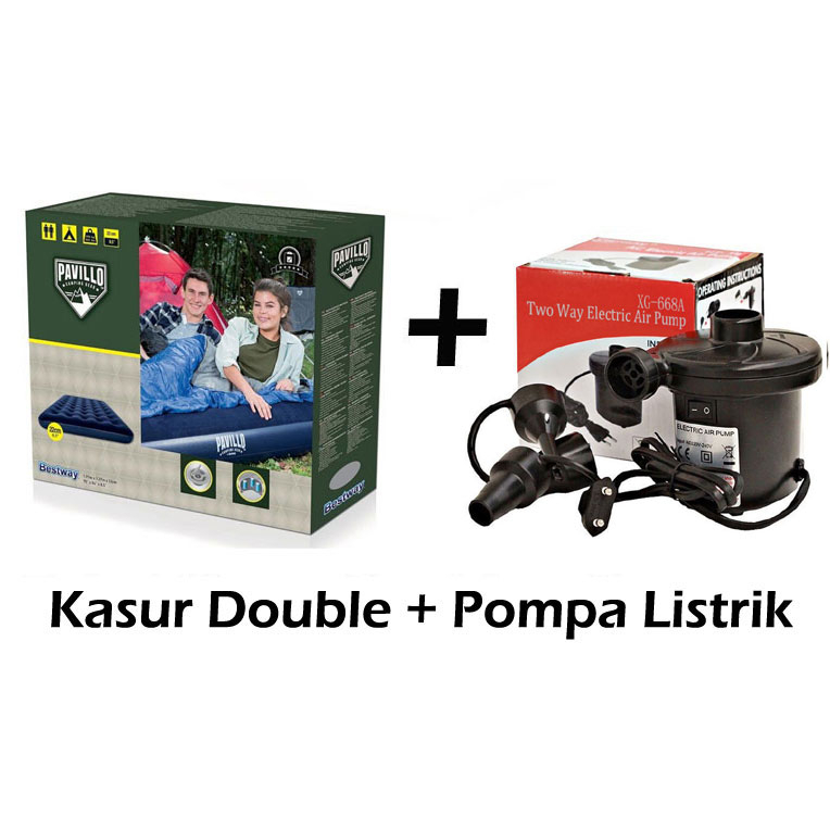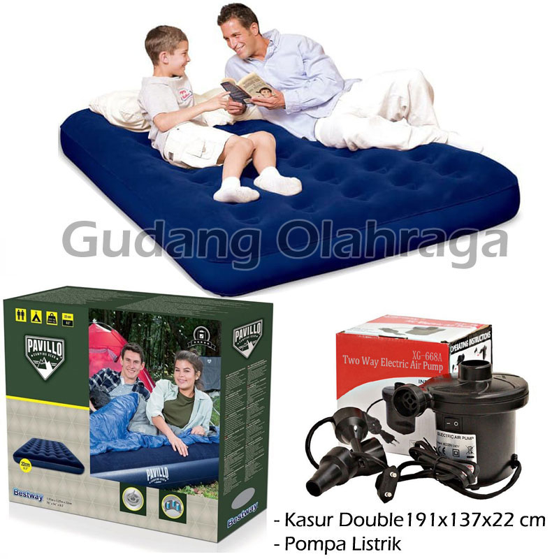 Bestway 67002 Kasur Angin Double Biru [191 X 137 X 22Cm] + Pompa Listrik
