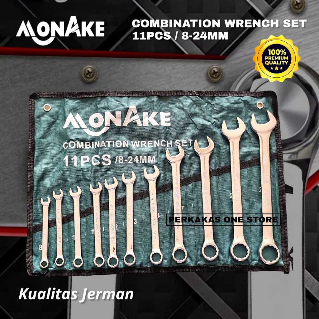 Monake Kunci Ring Pas Set 11Pcs 8-24Mm/Dengan Tas Penyimpanan Kunci Pcs Set 8-24Mm Set 11 Pcs Kunci Ringpas Set Cr-V