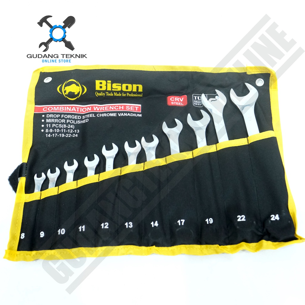 Kunci Pas Ring 1 Set 11Pcs 8-24Mm Bison / Kunci Ring Pas 11 Pcs Set 8-24Mm - Combination Wrench Set Bison