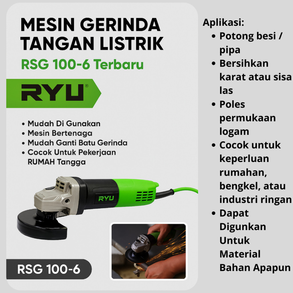 Gerinda Tangan RYU RSG 100-6 4in 4inch Gerenda Gurinda Grinda Listrik Multifungsi Mesin Pemotong Besi Kayu Keramik