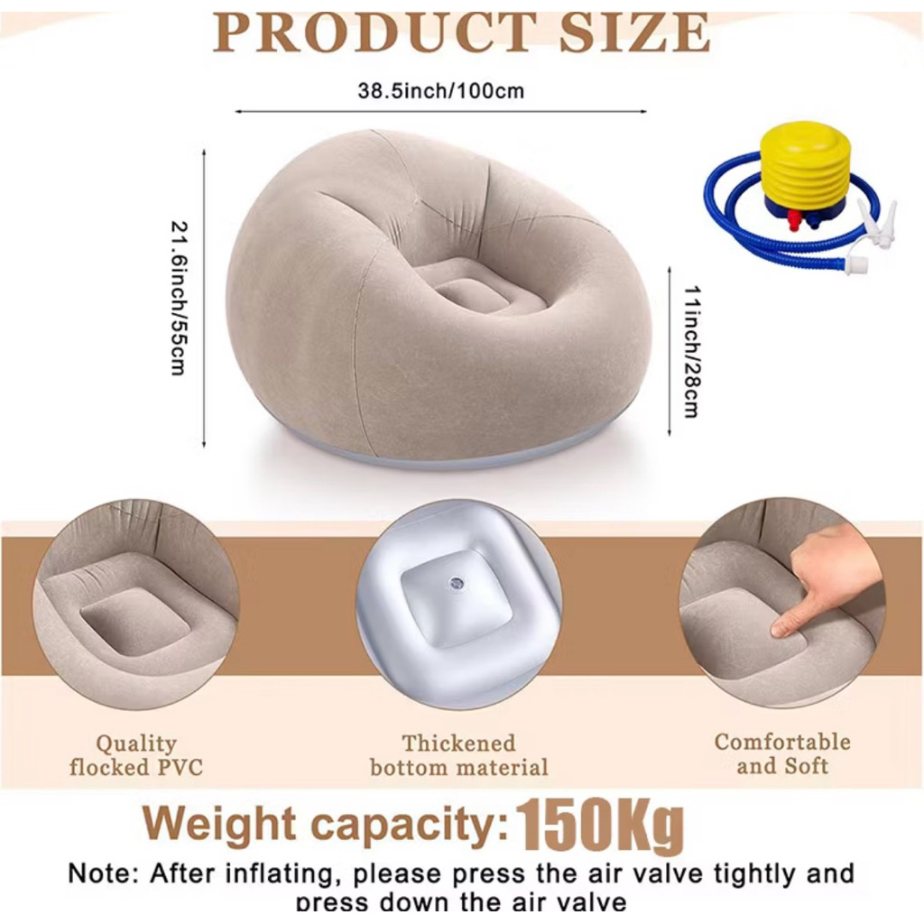 Sofa Santai Angin Free Pompa Sofa Bean Bag Indoor Outdoor Sofa Angin Beanbag Inflatable Sofa/Lazy Sofa/Penyimpanan Mudah