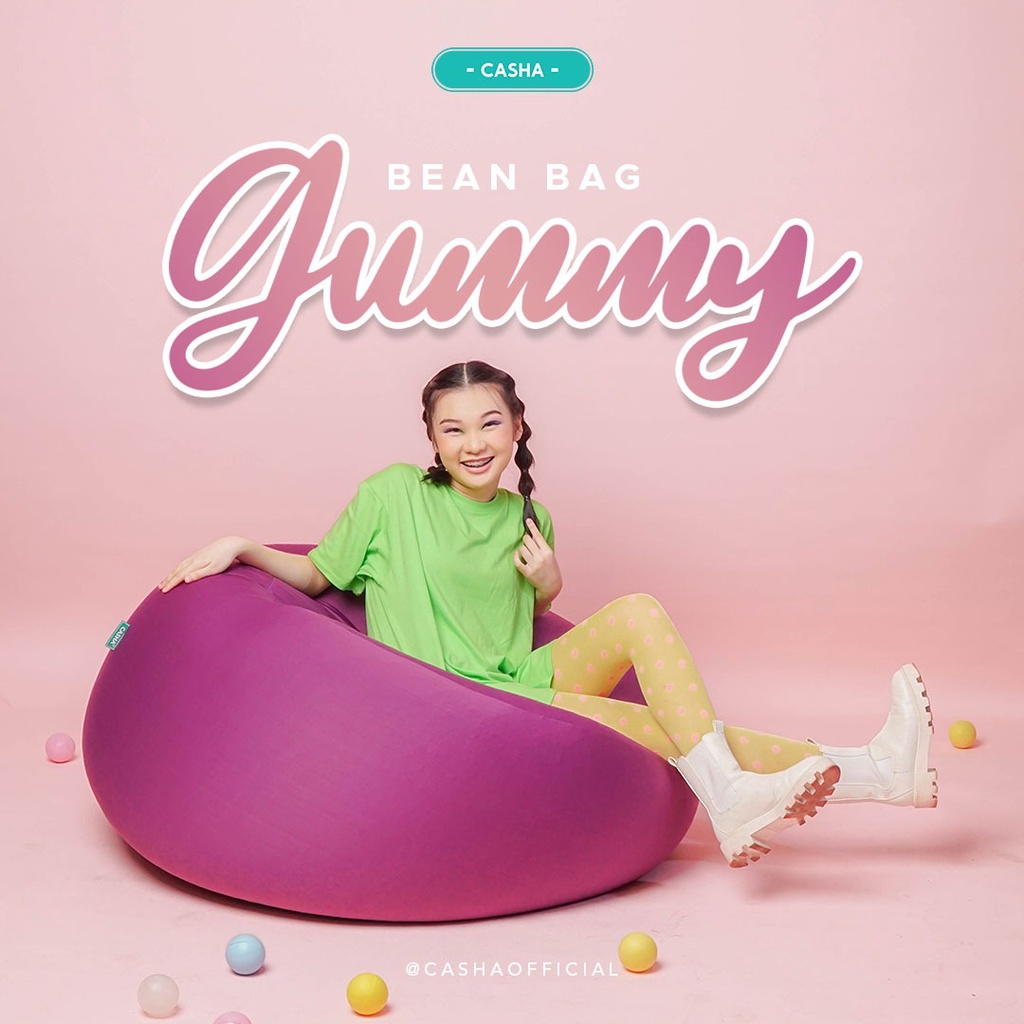 Casha- Gummy L Bahan Polyester Stretch Plus Isi - Bean Bag Murah - Bean Bag Dewasa - Sofa Millenial - Sofa Min