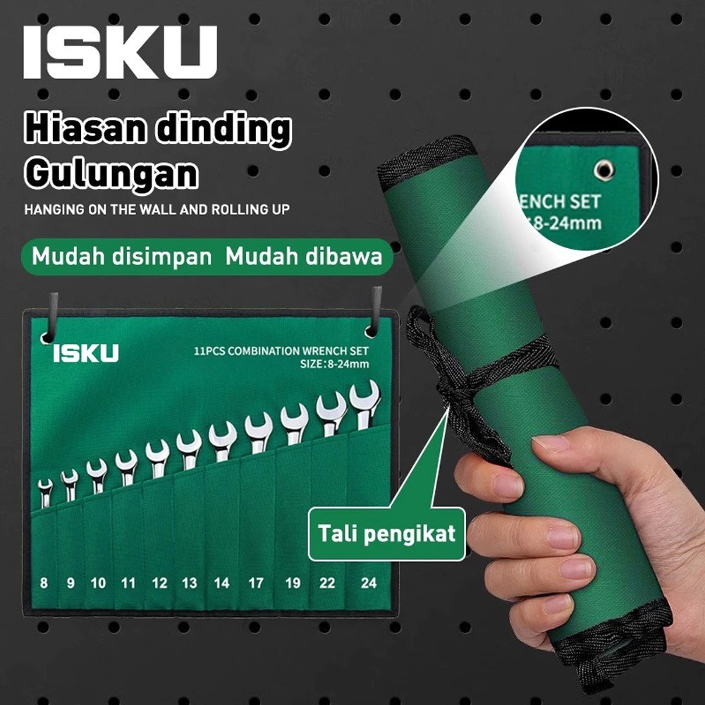 Isku Kunci Ring Pas Set 11Pcs 8-24Mm/Tas Penyimpanan Oxford/Anti Karatset Tool-Alat Perkakas Lengkap 11Pc Kunci Ring Pas