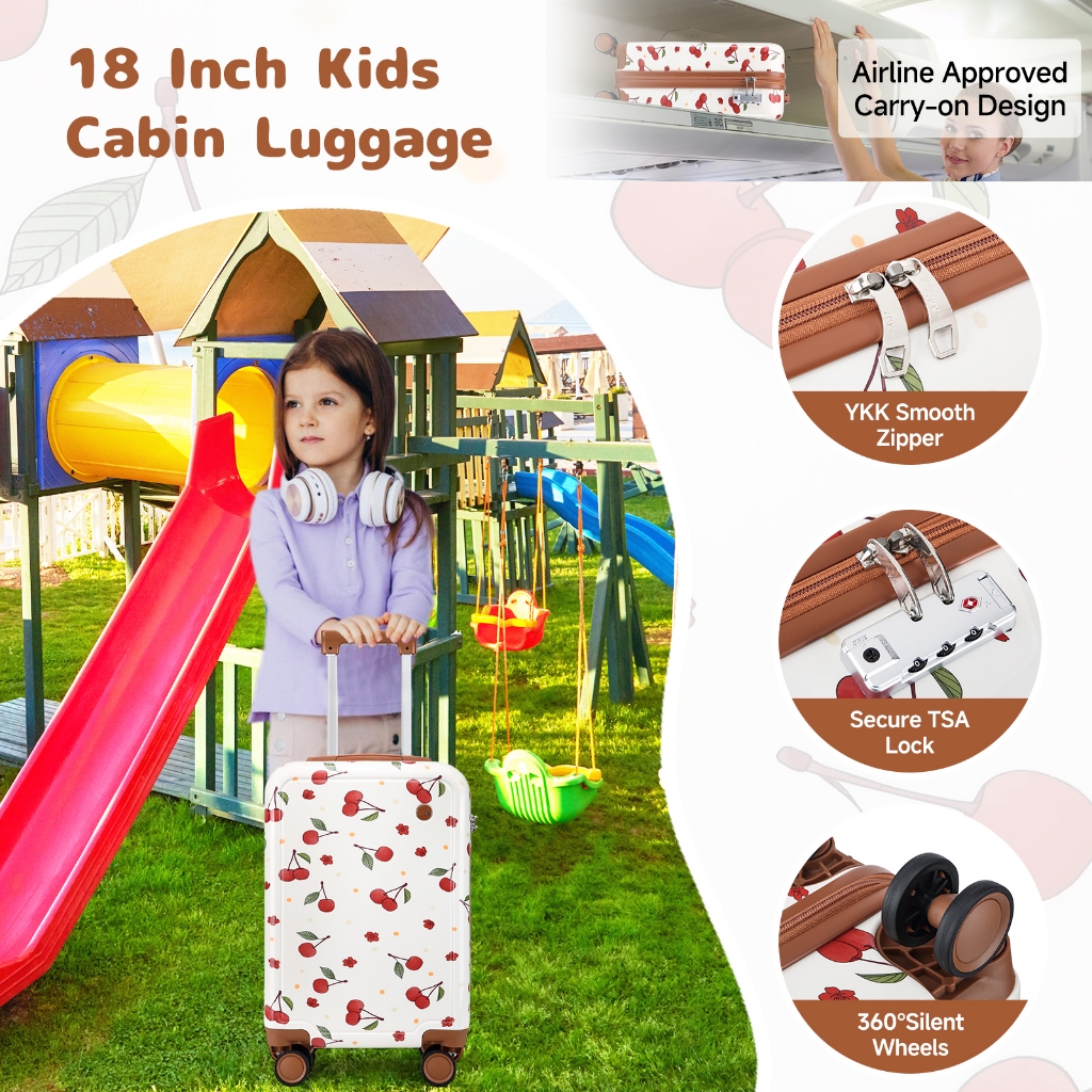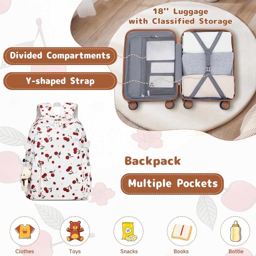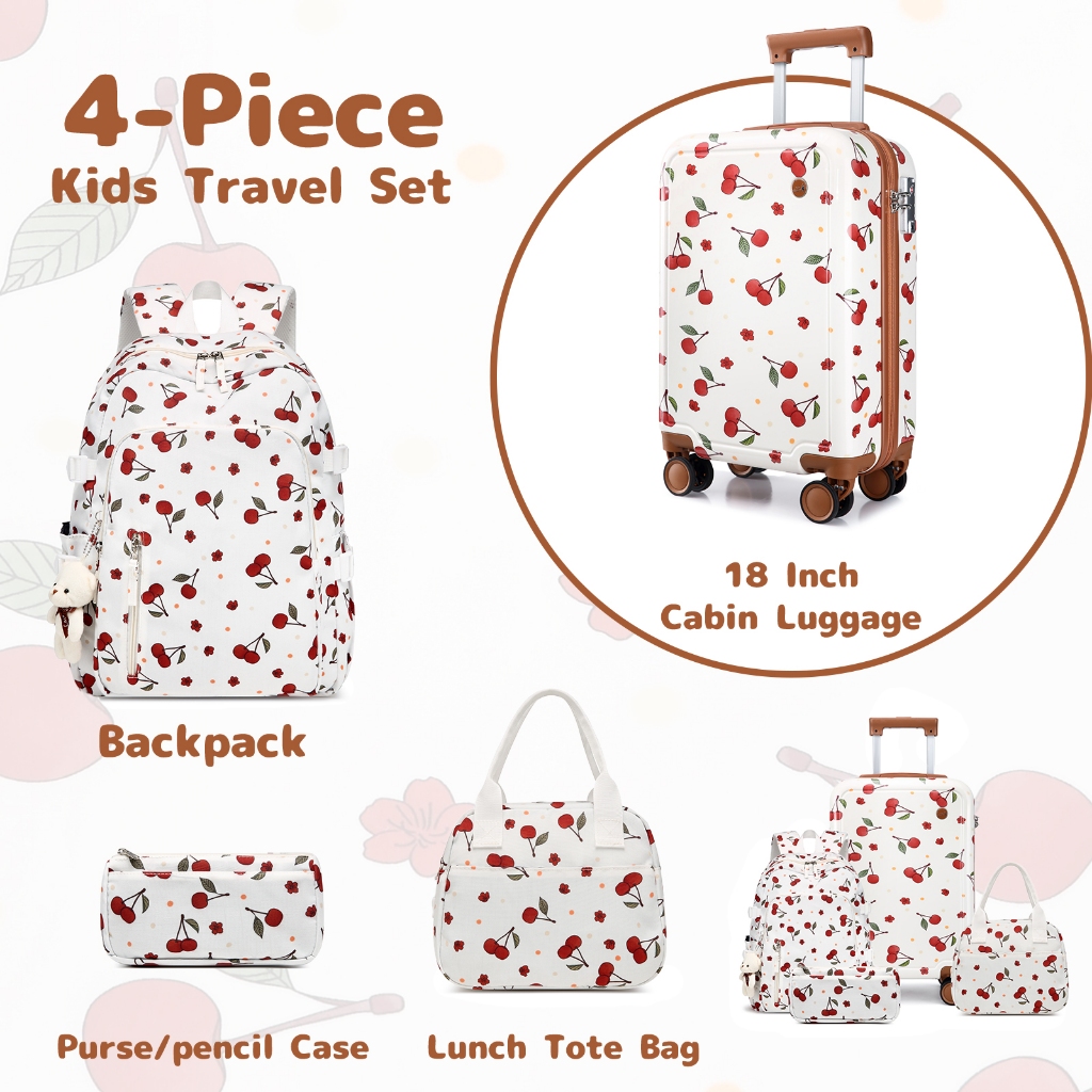 Sea Choice 18 Inch Lucu Dicetak Koper Kabin Pc Hardshell Set Bagasi Ringan, 3 Pcs Backpack Bag Set