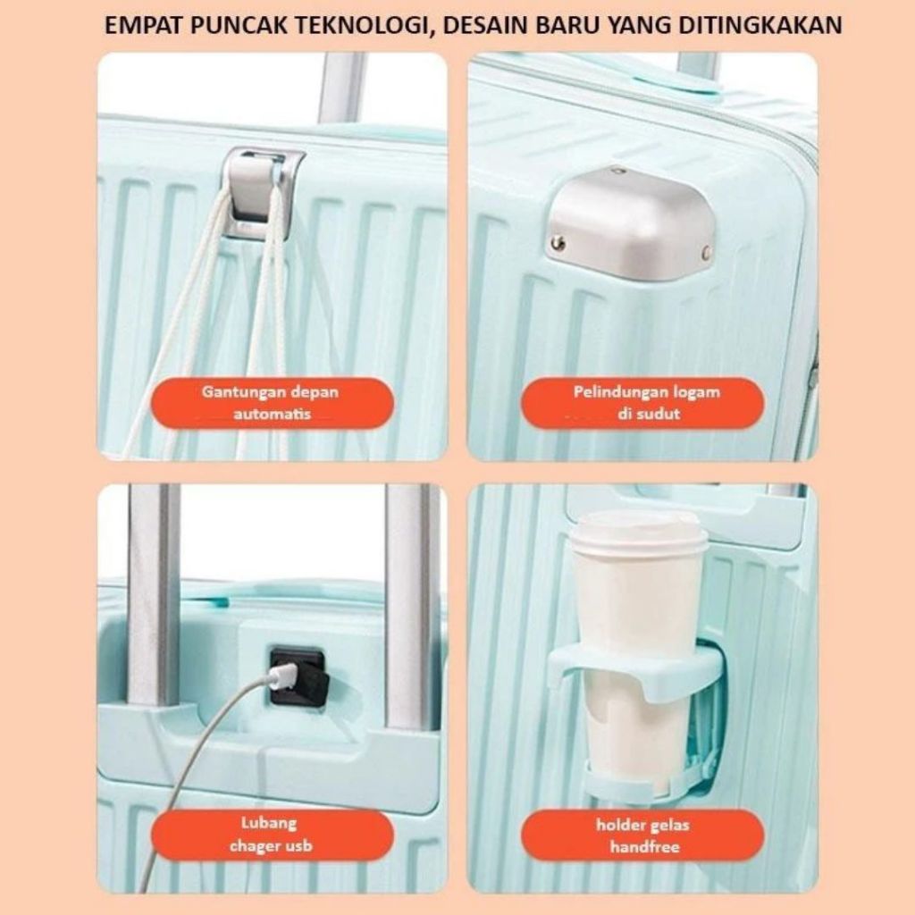 Poloshare Koper Kabin & Bagasi 20/24/28 Inch Tsa Lock Ringan Stand Cup & Charger Usb Anti Pecah Bergaransi