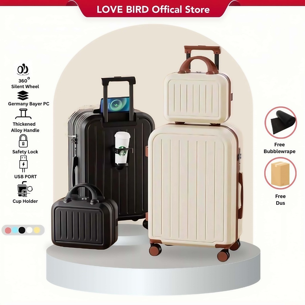 Love Bird Kapasitas Besar Koper 24 Inch 20 / 22 Inch Travel Kabin & Bagasi Laptop New Design Bagasi Stand Cup / Charger