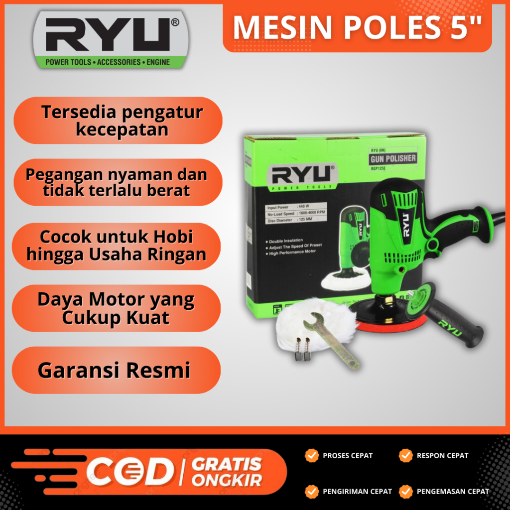 mesin poles body mobil 5" alat poles body motor gun polisher RYU RGP 125E
