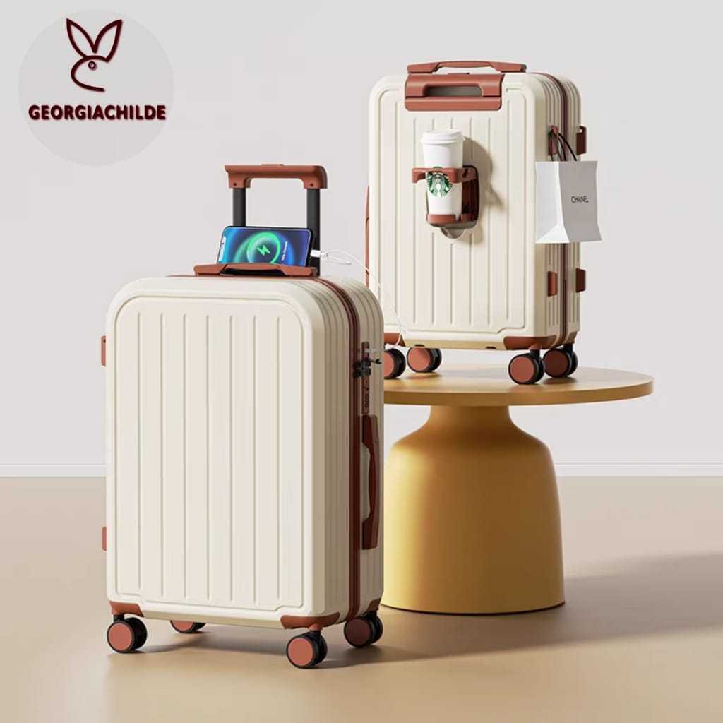 Koper Zipper Kapasitas Besar 20''22''24 Inch Stand Cup / Usb Charger Koper Travel Modis