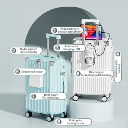 Koper 24 Inch Pengisian Daya Usb Kotak Kata Sandi 22 Inci Dengan Tempat Cangkir Koper Kabin 20 Inch
