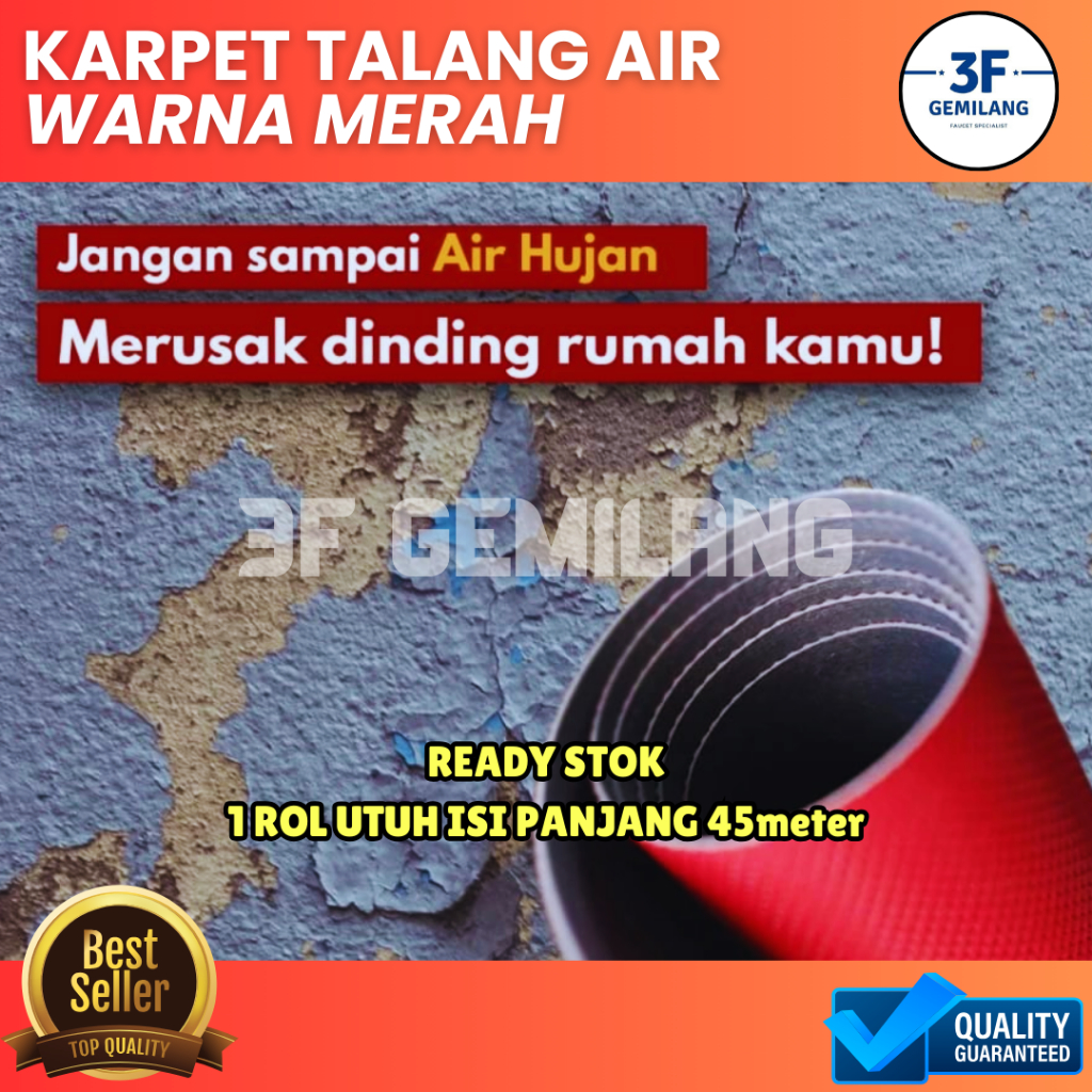 Karpet Talang Air Polyethylene Tebal Anti Bocor - Merah Hitam/Kuning Mengkilap - Alas Atap Kandang - Ready Banyak Ukuran