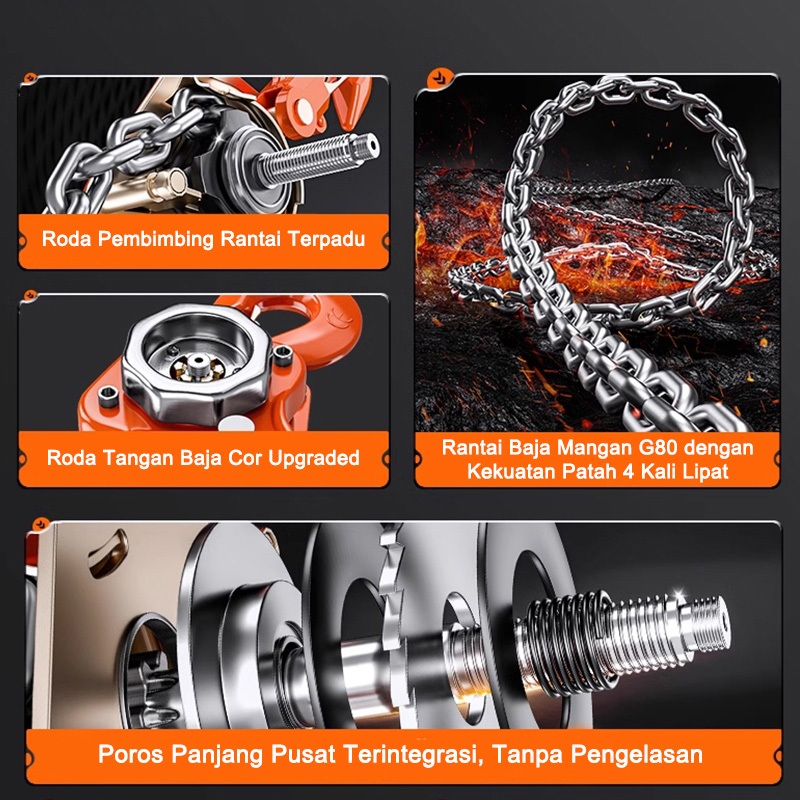 Takel Manual / Chain Block 1Ton 2Ton 3 Meter - Lever Hoist untuk Angkat Beban Berat, Traksi Mobil, Perbaikan Mesin & Bengkel