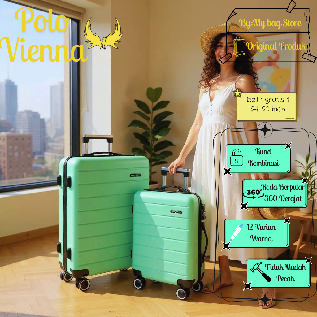 Promo 10.10 Koper Set 24 Inch + 20Inch ( Dapat 2 Pc ) 001 Polo Vienna Bisa Bahan Fiber ,Bergaransi