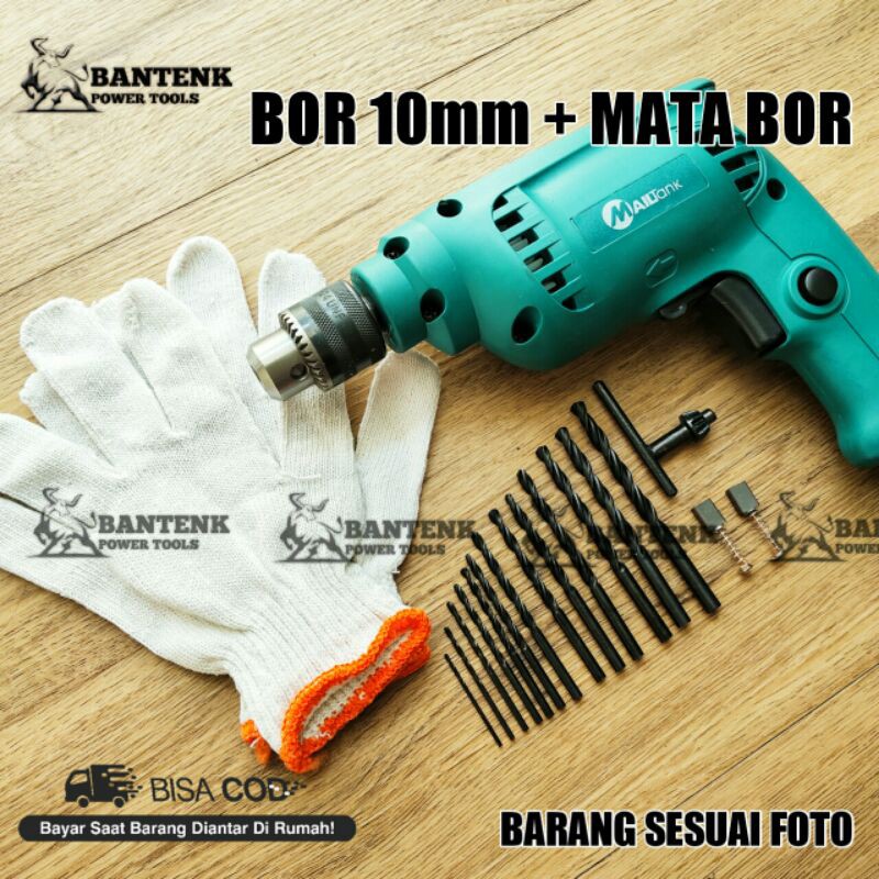 MESIN BOR LISTRIK 10MM + MATA BOR MAILTANK SH30. MESIN BOR BESI KAYU TEMBOK. BOR LENGKAP MATA BOR