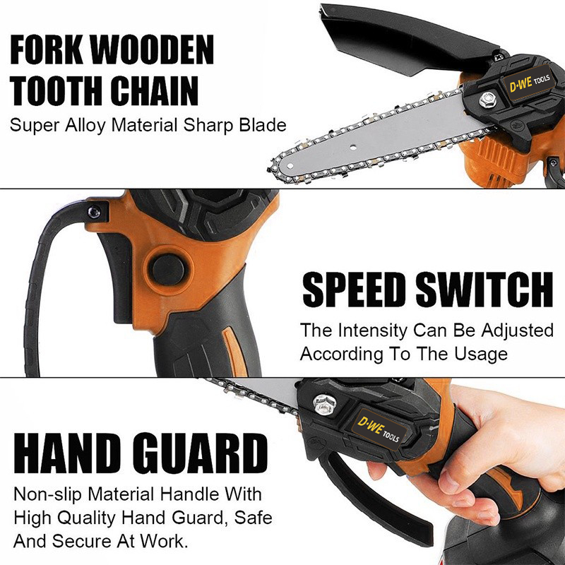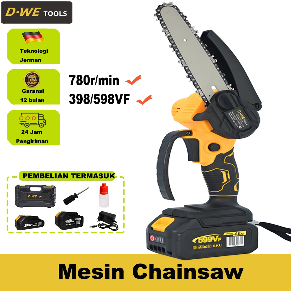 Mesin Chainsaw 6 Inch Cordless Chainsaw 598V Gergaji Baterai Gergaji Rantai Elektrik Mini 2 Baterai Gergaji Listrik