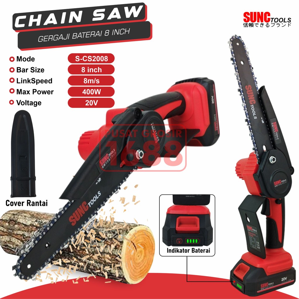 Mesin Gergaji Baterai Cordless Chain Saw 8 inch SUNC TOOLS