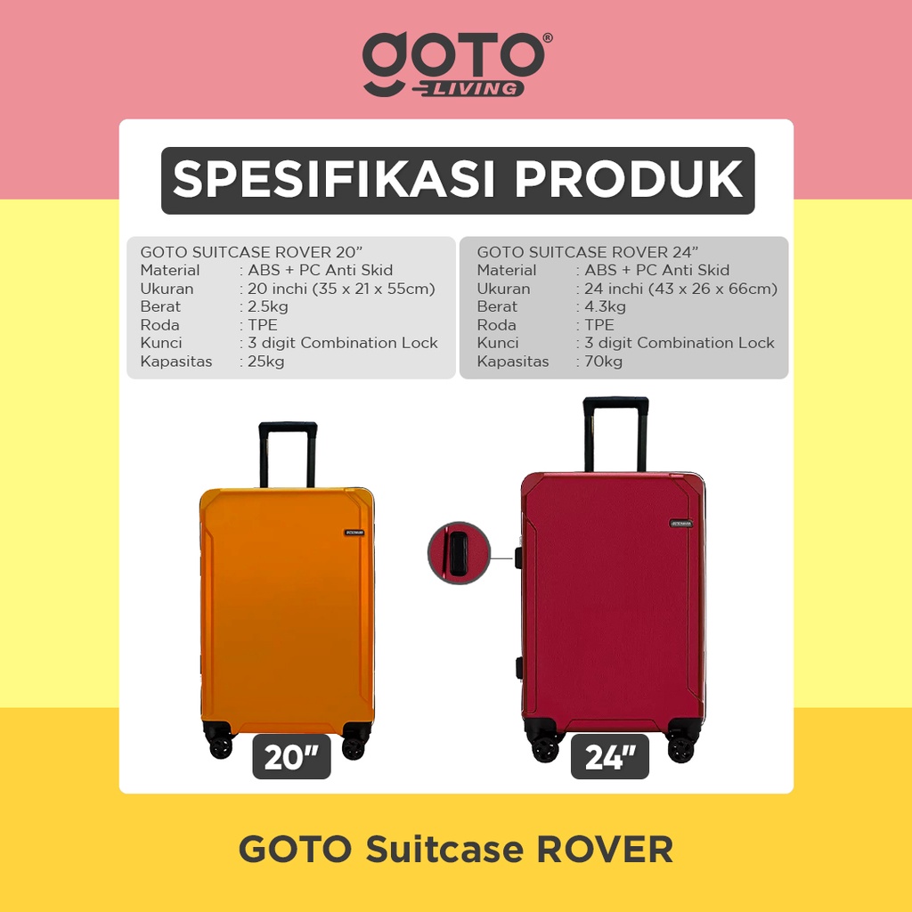 Goto Rover Koper Roda Kabin Suitcase Kunci Cabin 20 24 Inch Bagasi