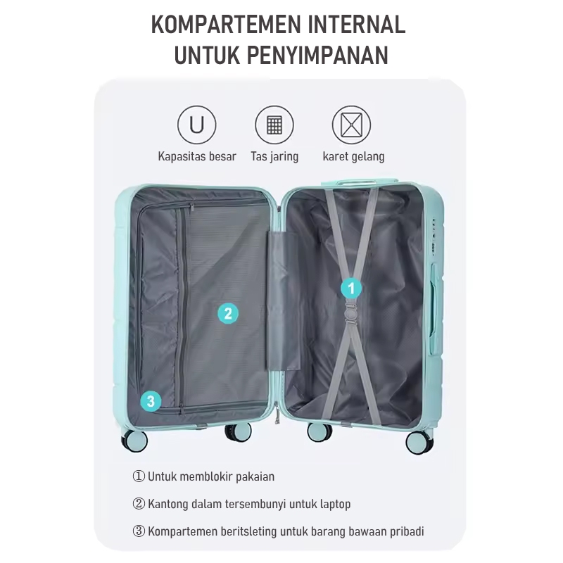 Boldedge Tempat Gelas Koper Kabin & Bagasi Size 20/24 Inch Abs Koper Kabin Ringan Roda Universal Beberapa Pilihan Warna