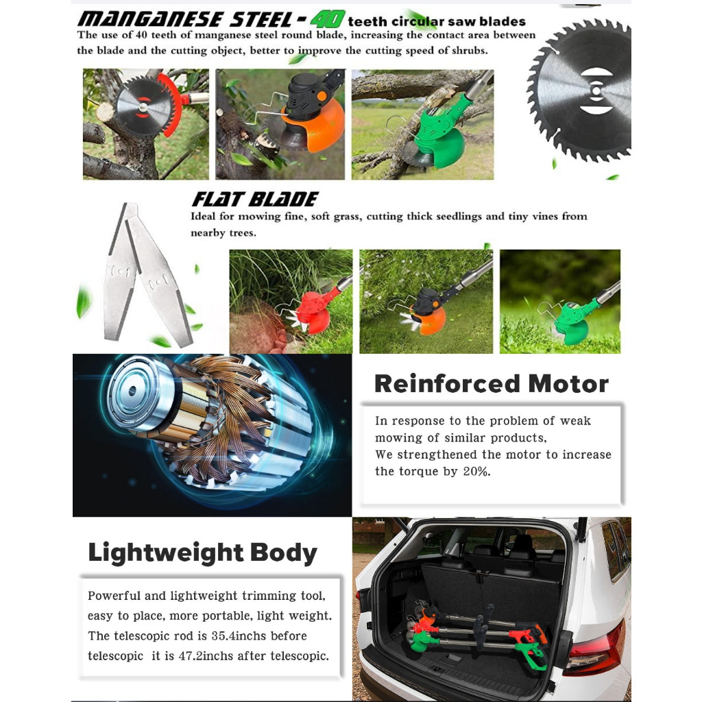 Nexor 588V Mesin Pemotong Rumpu Listrik Pemangkas Rumput dengan Cordless Lawn Mower Trimmer