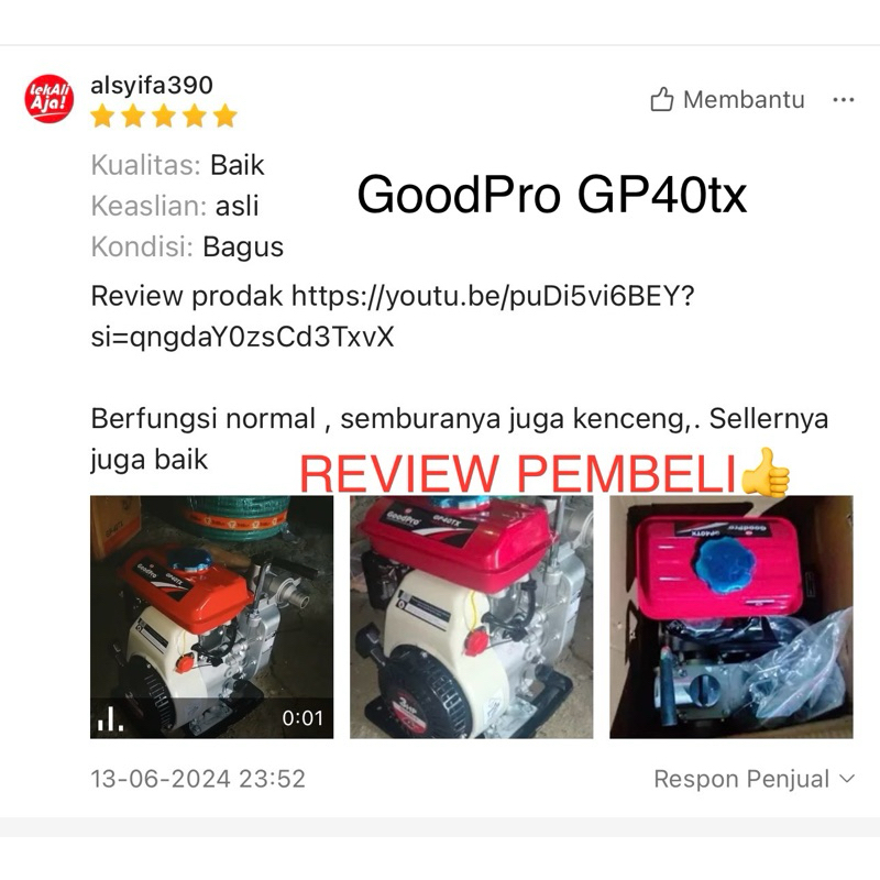 POMPA AIR IRIGASI 4 TAK WP15 1" - 1 1/2" 1.5 Inch GoodPro GP40TX Pompa Air Sawah 4Tak Kishon