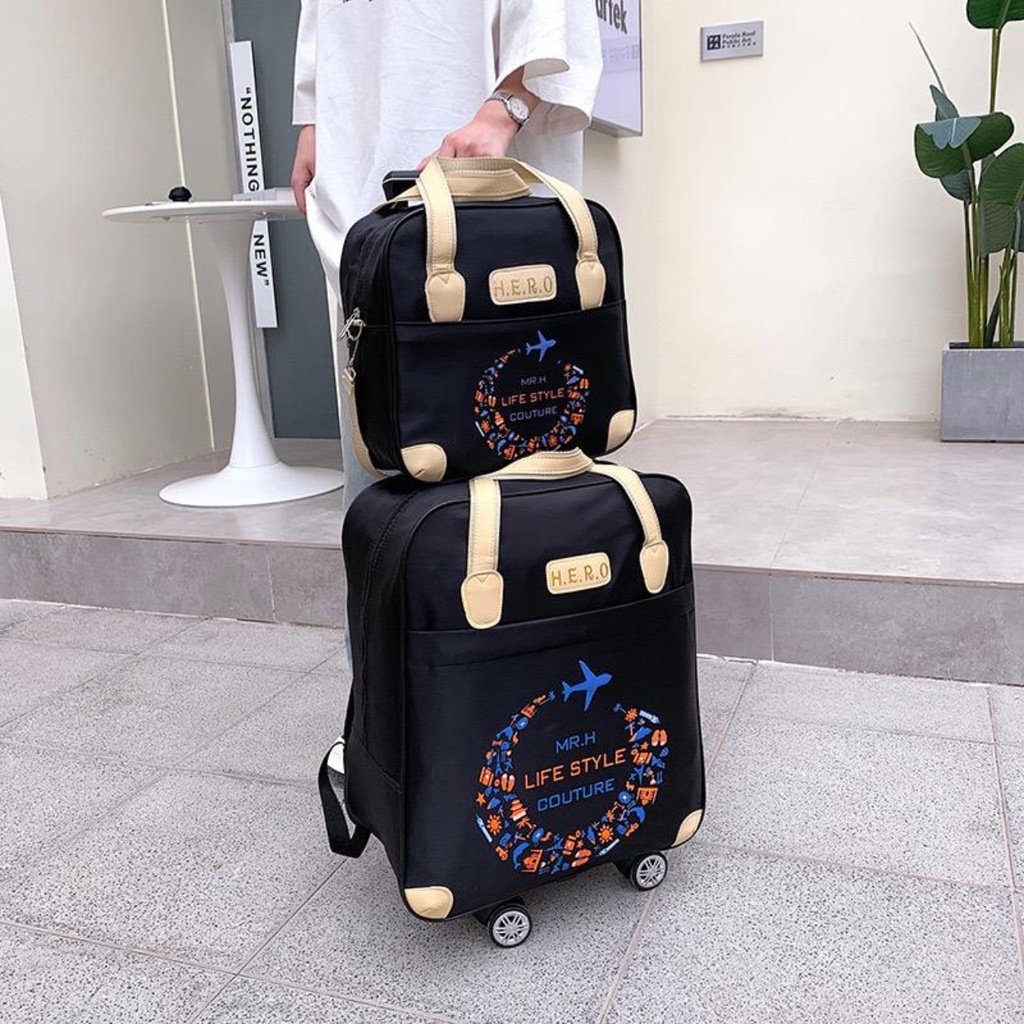 Tas Troli 2 Buah / Set Tas Tangan Travel Kabin / Set Bagasi Portable Trolley Travel Bag