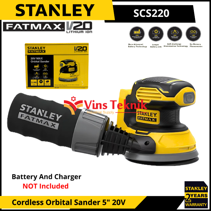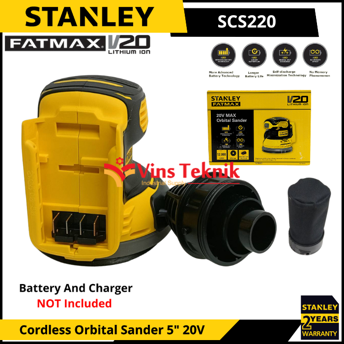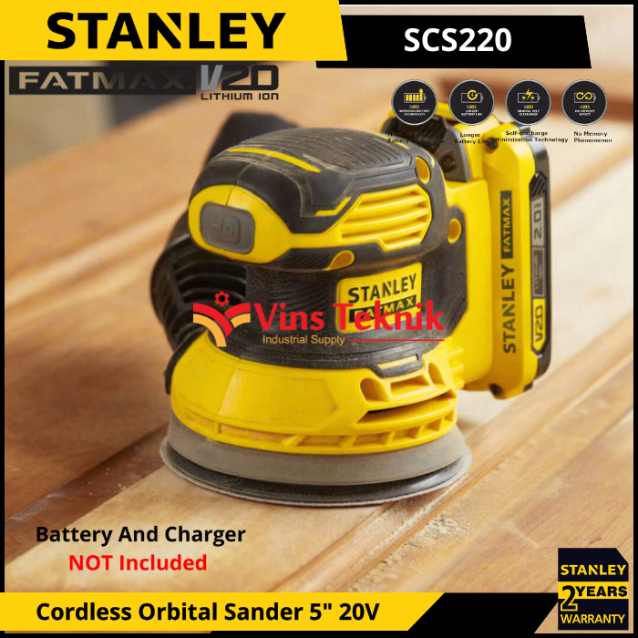 STANLEY SCS220 Mesin Amplas Baterai Cordless Random Orbital Sander 5" 125MM 20V SCS 220
