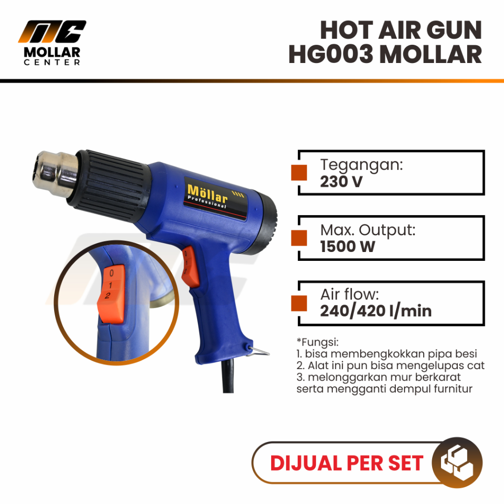 TERMURAH- HOT AIR GUN MOLLAR HG003 HEAT GUN PEMANAS UDARA STICKER