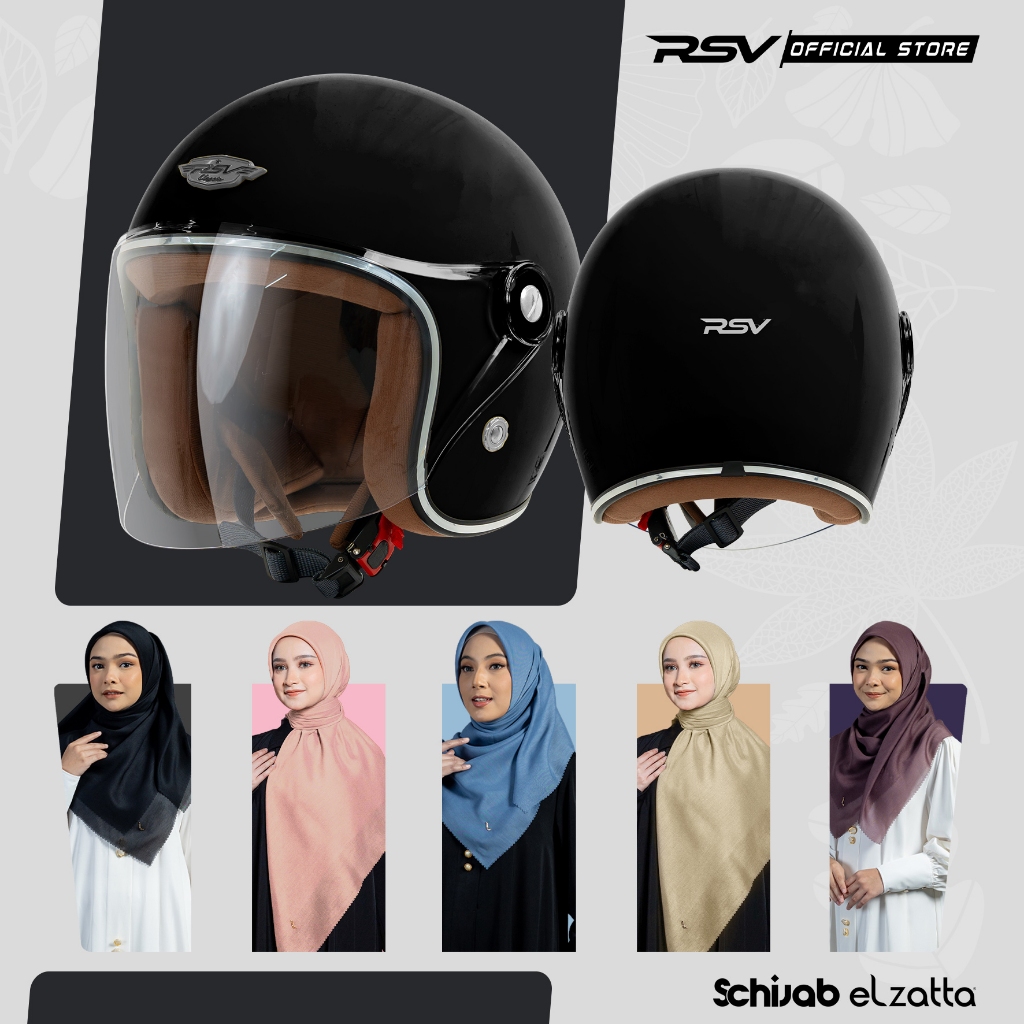 [Bundle Hijab Elzatta] RSV SC Hijab Retro Classic Helm Half Face - Black Glossy