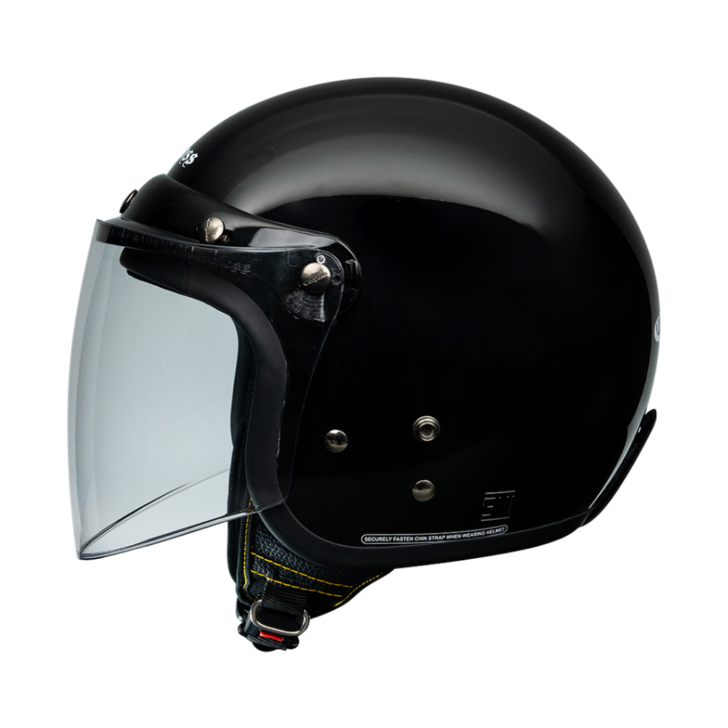 Cargloss CFM Retro Visor Pet Helm Half Face - Deep Black