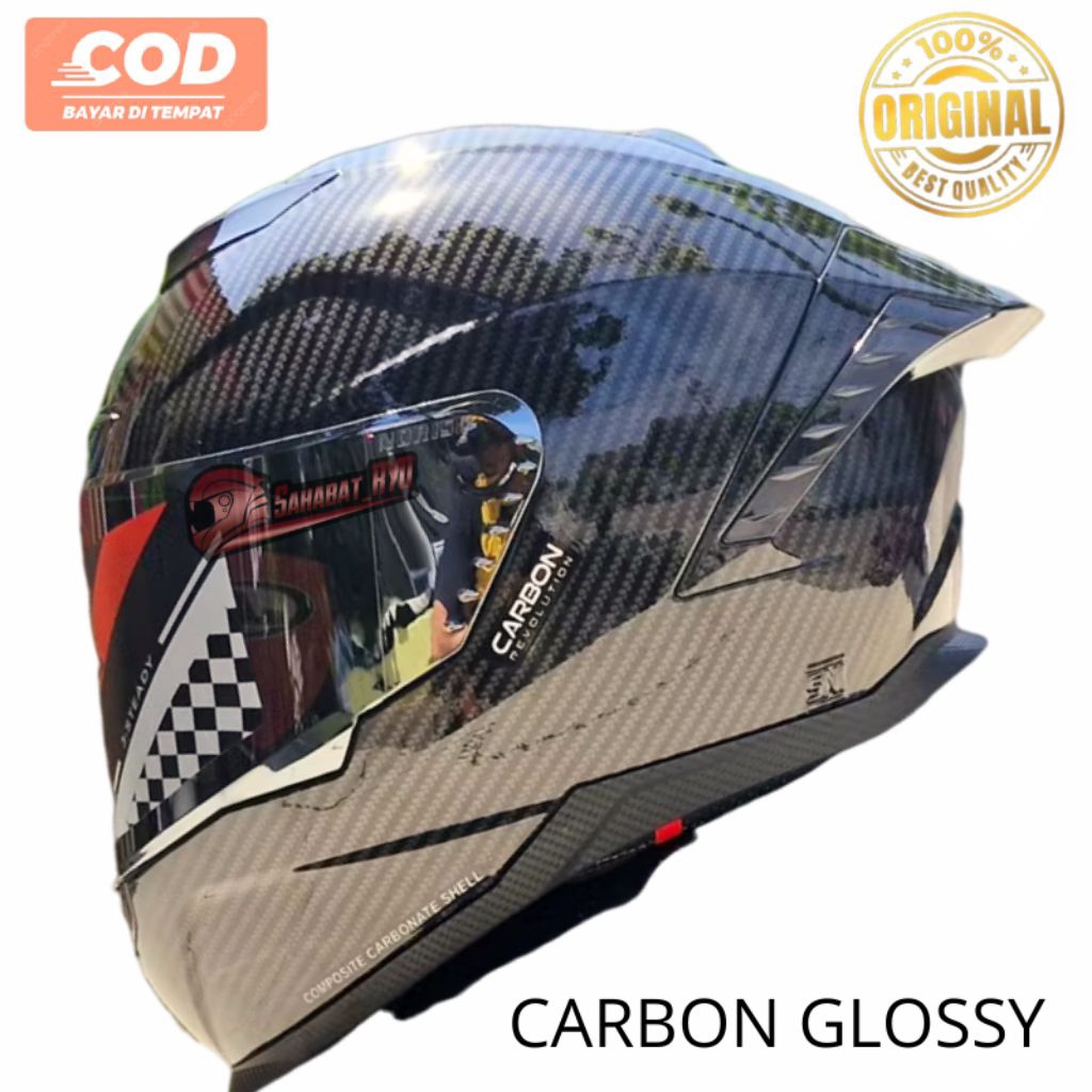 Helm Full Face Motif Carbon Terbaru Paket Ganteng Dewasa FULL CARBON & Polos Original SNI
