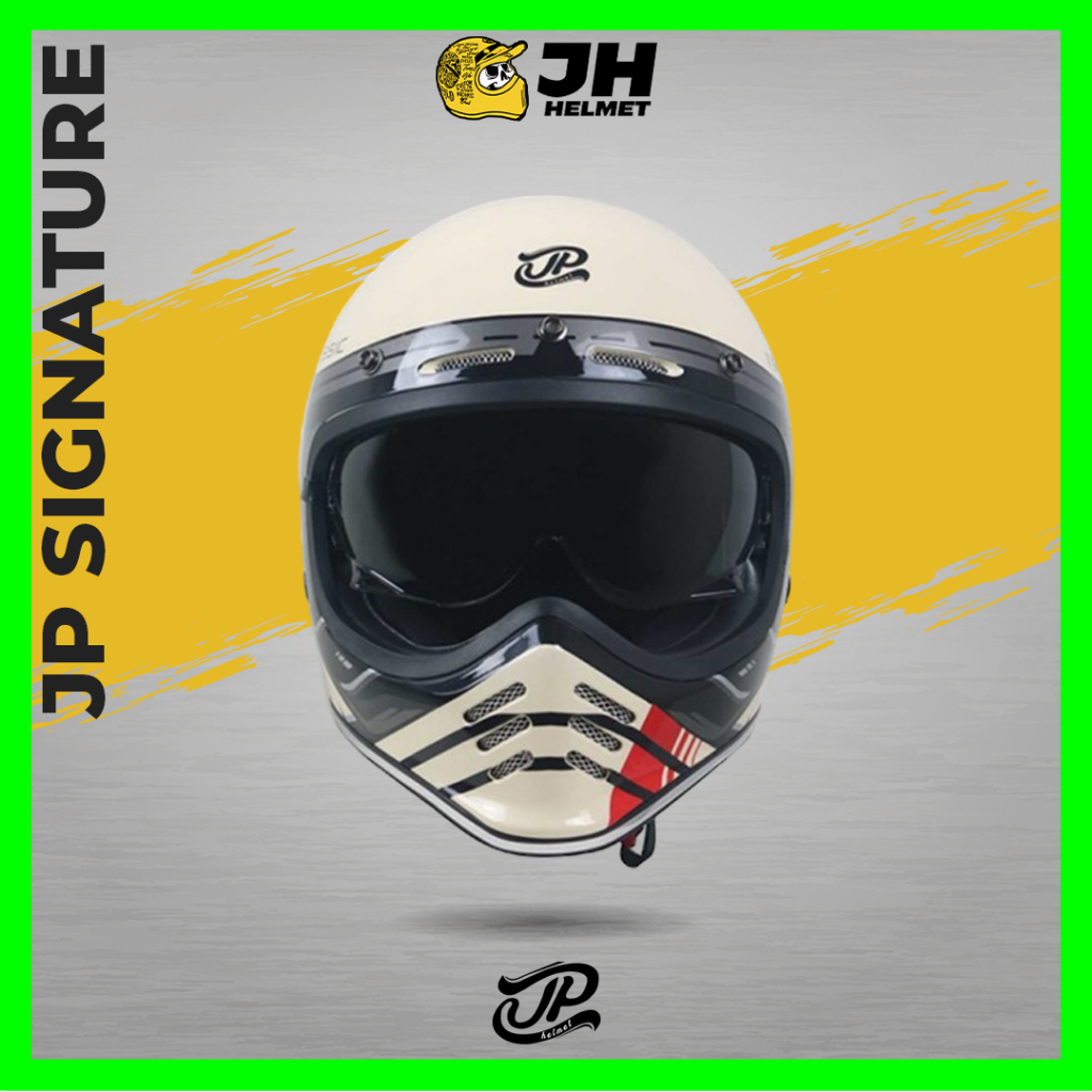 Helm JP Signature Motif SG11 Trapper White Cream Glossy | Helm Cakil | Helm Retro | Helm Full Face | Jual Helm