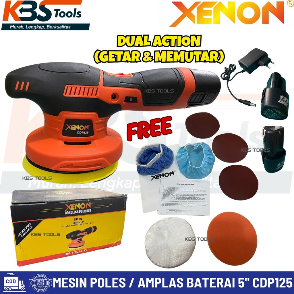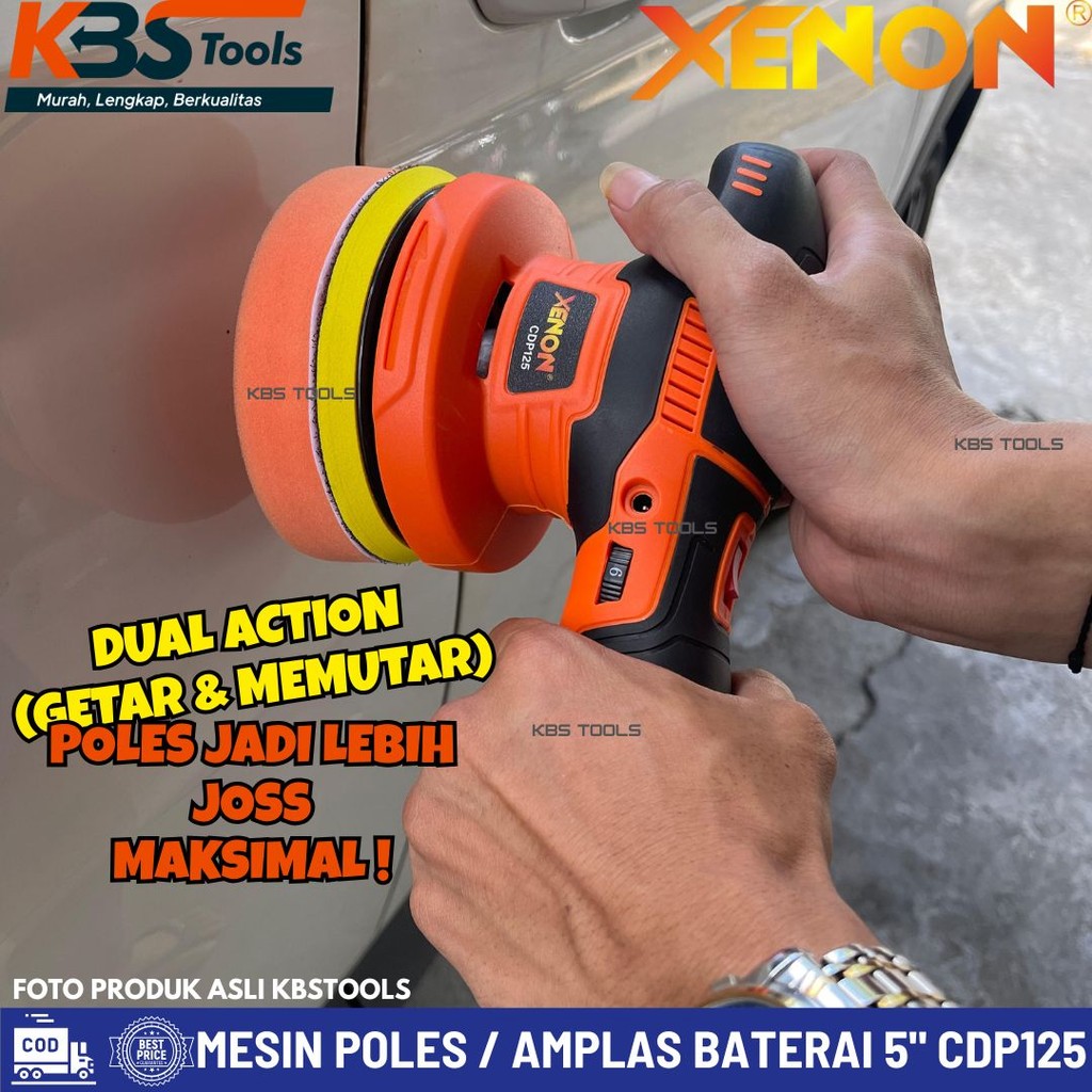 Mesin Poles Mobil Motor / Amplas Kayu Baterai XENON CDP125 Cordless Polisher Portable 12 Volt Dual Action