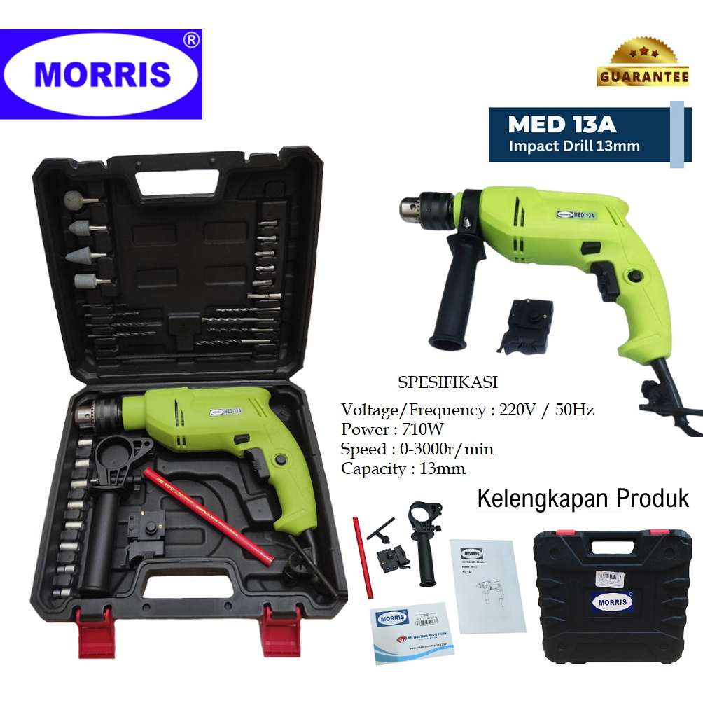 Morris Mesin Bor Mesin Listrik 13 Mm Impact Tembok Beton + Aksesories + Koper