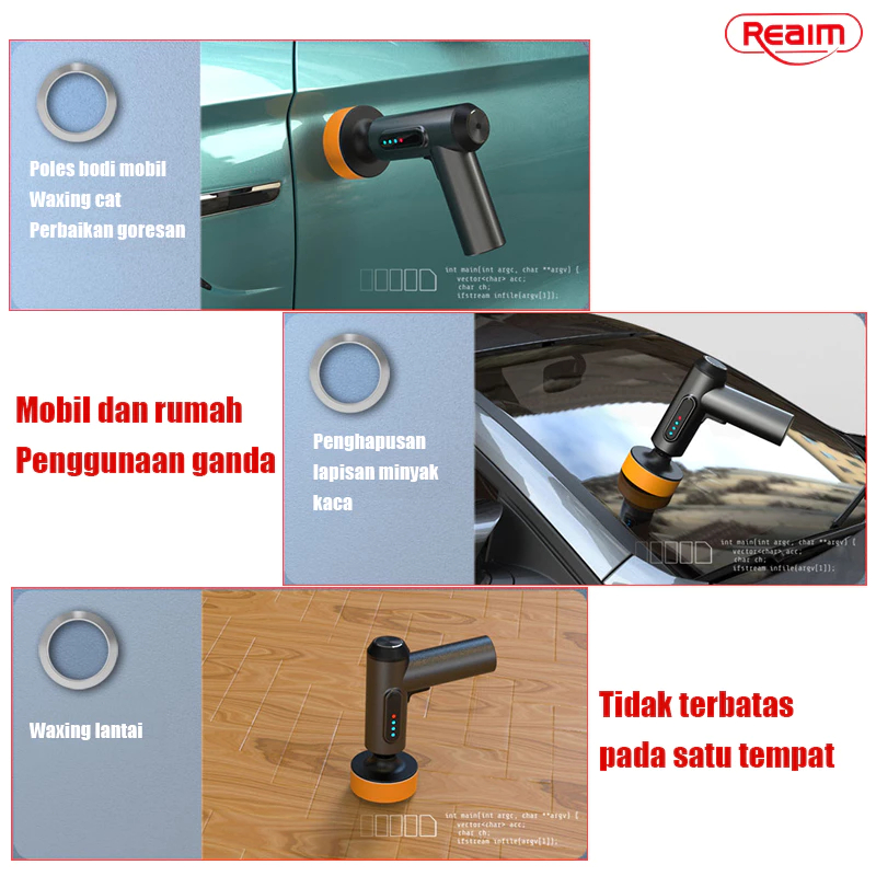 REAIM Mesin Poles Mobil 80W Mesin Poles Mobil Listrik Tugas Berat Lilin Poles Poles Halus Gerinda Orbital Acak
