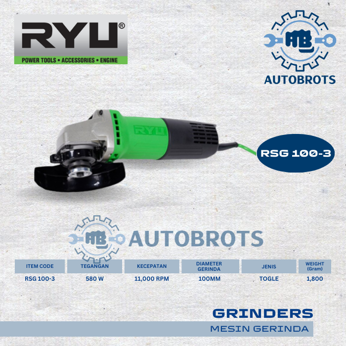RYU Mesin Gerinda RSG 100-3 / Disc Angle Grinder 4" Toogle