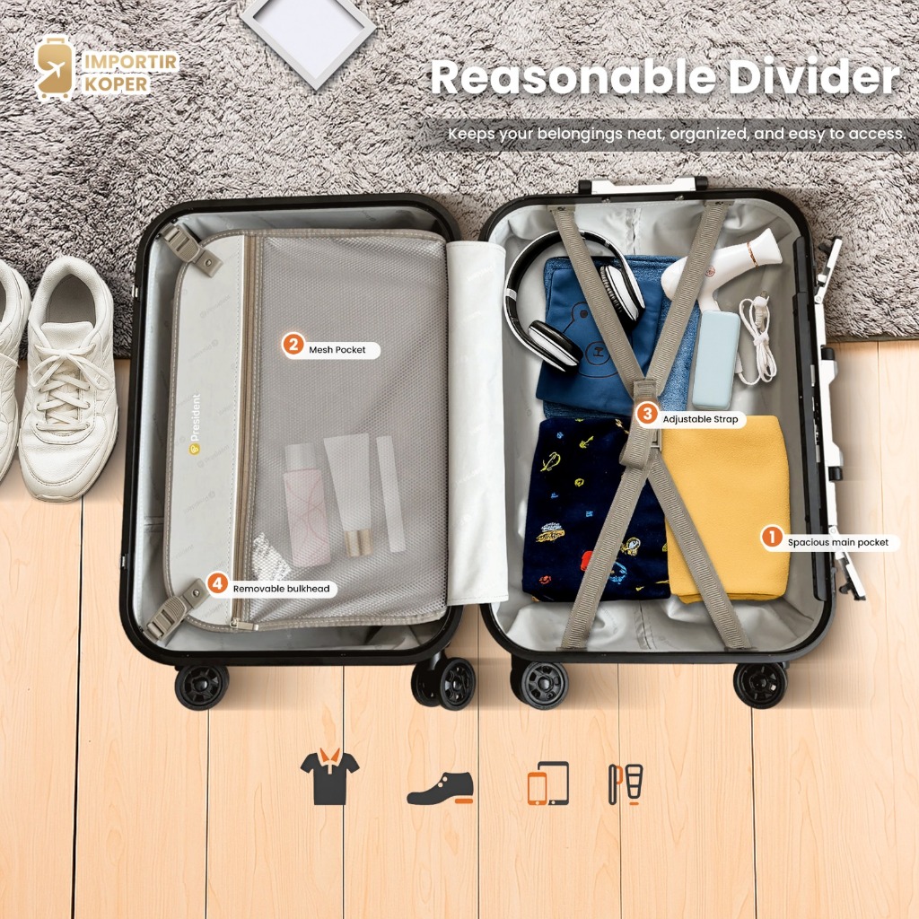 Importir Koper President Original 5559 Size 20 24 28 Inch Tsa Lock Aluminium Anti Pecah