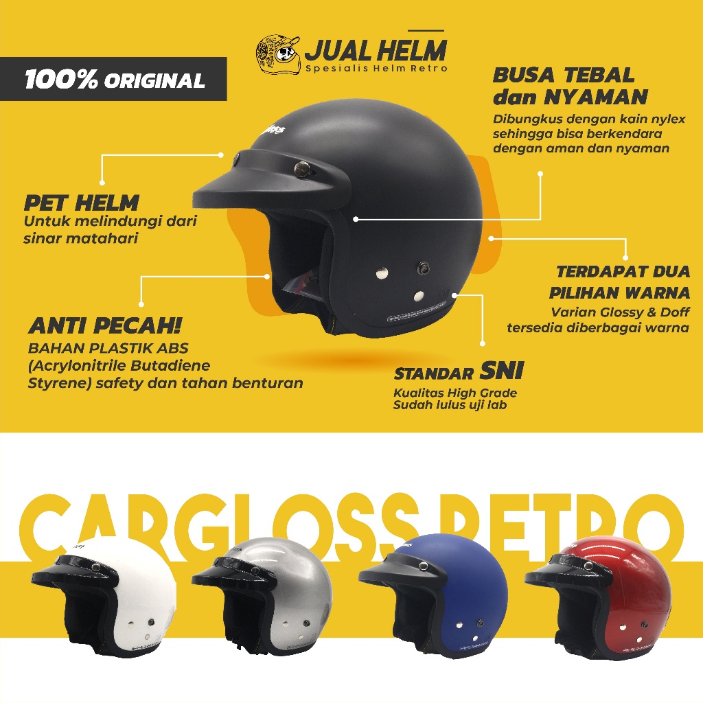 Helm Cargloss Retro Original CFM Motif Speed Duck Avorio Naiade Cream Glossy | Helm Half Face | JUAL HELM