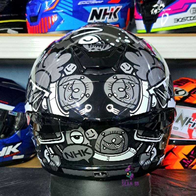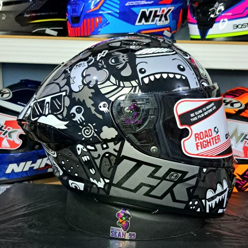 HELM NHK MARK 1 DOODLES BLACK SILVER SINGLE VISOR RHD LENS LIGHT SMOKE FULL FACE ORIGNAL SNI