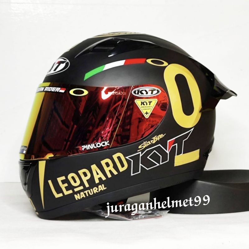 Helm Full face KYT R10 Black Doff Paket Ganteng Leopard