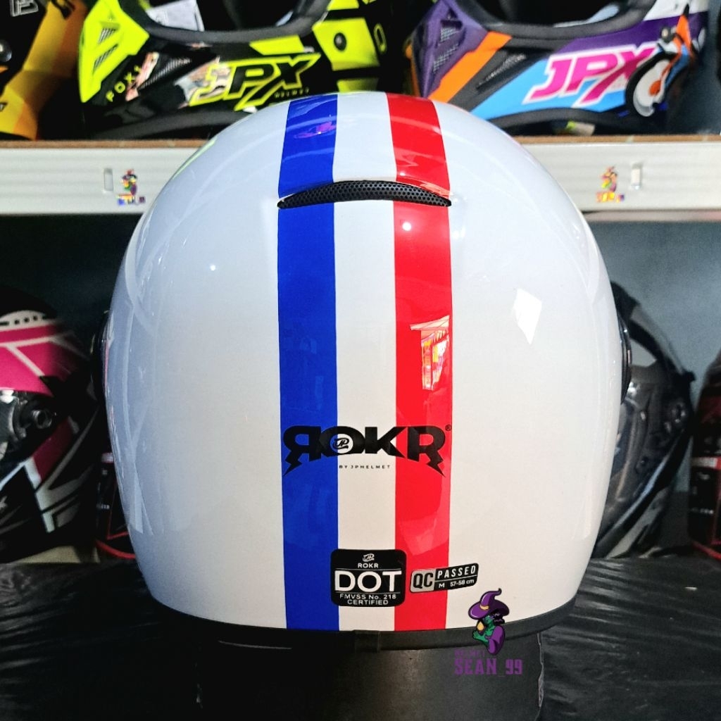 HELM JPX JP ROKR MOTIF RK 02 BROKEN WHITE FULL FACE ORIGINAL SNI DOT