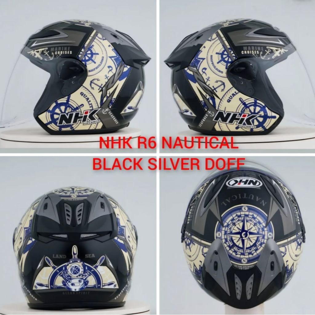 HELM NHK HALF FACE HELM NHK R6 NAUTICAL BLACK SILVER DOFF