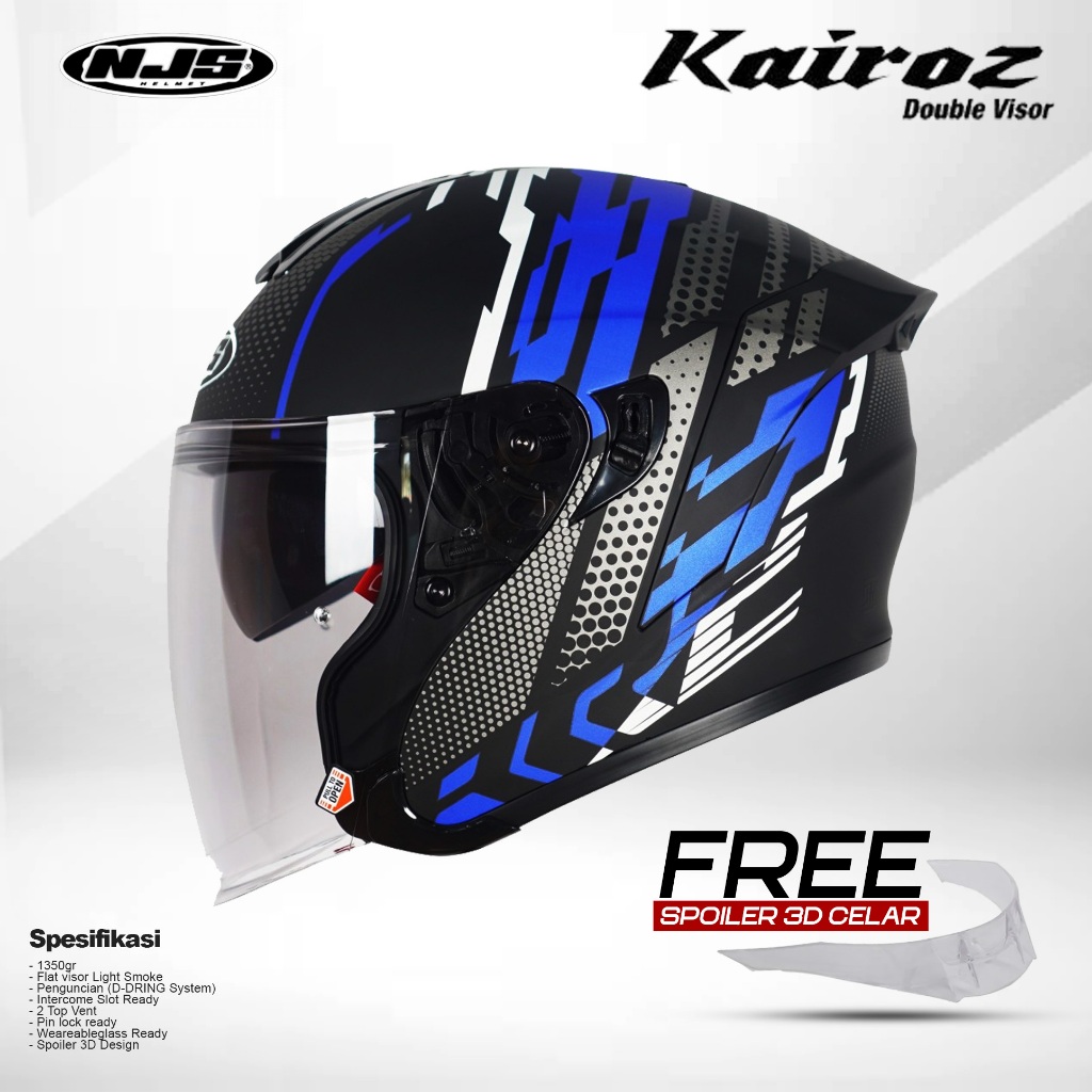 HELM NJS KAIROZ DOUBLE VISOR MOTIF FREE SPOILER 3D CLEAR - helm half face
