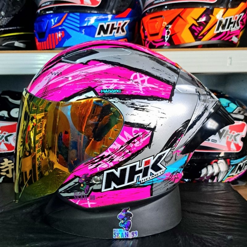 PAKET GANTENG HELM NHK R1 ELITE GP ALL MOTIF VISOR IRIDIUM HALF FACE ORIGINAL SNI