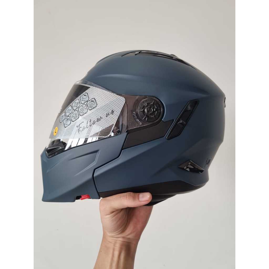 ZEUS ZS 613H FFGRIBLUE MODULAR CROSSOVER DOUBLE VISOR